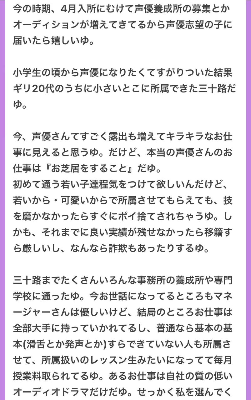 廃業を決意した三十路の女性声優さんが声優志望者達に送った切実なメッセージが話題に…