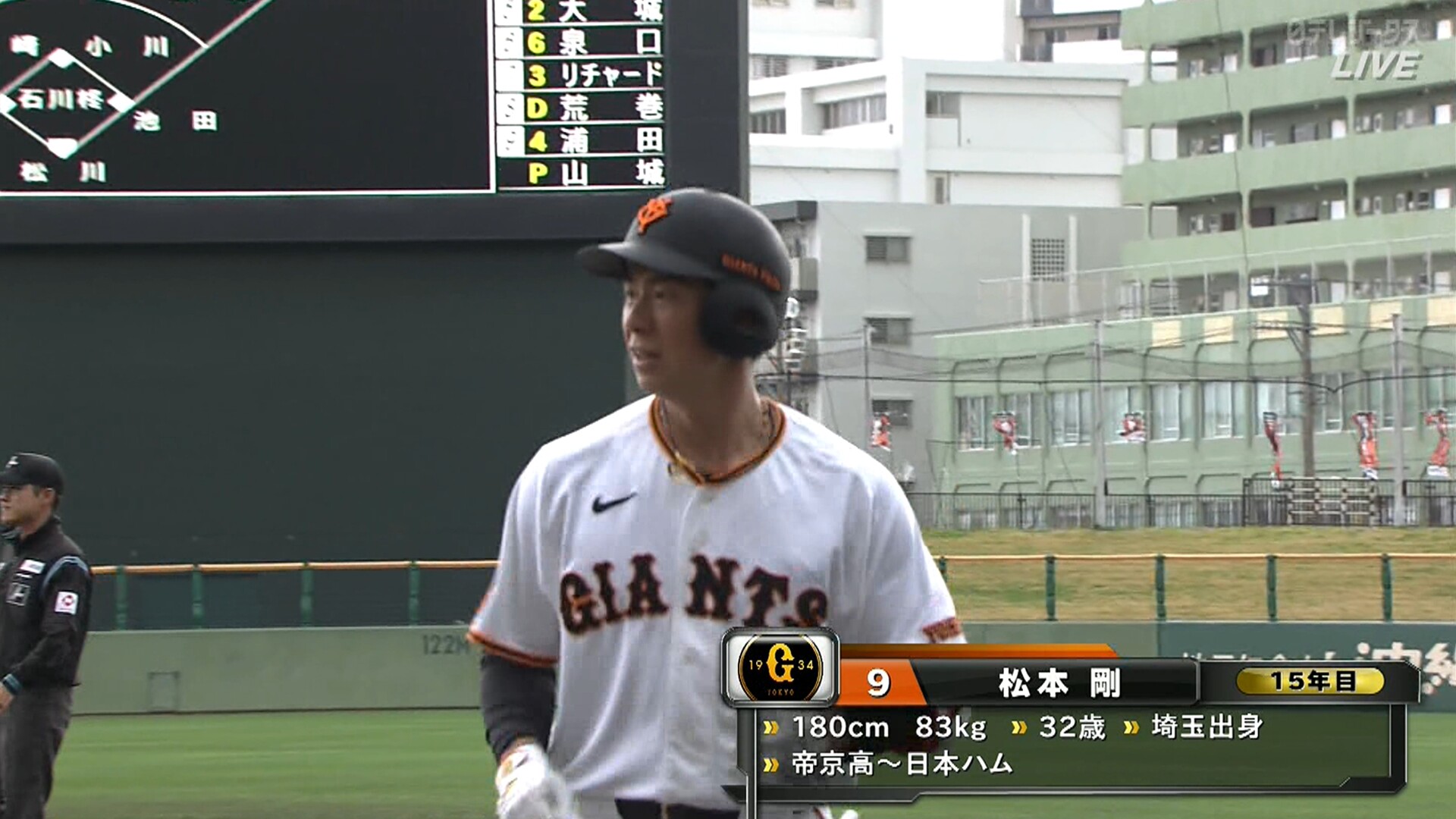 松本剛、巨人での初打席は見慣れたライトフライwwww