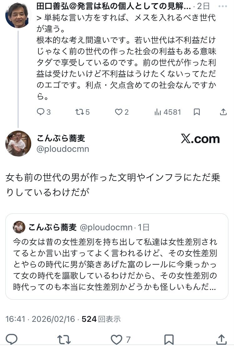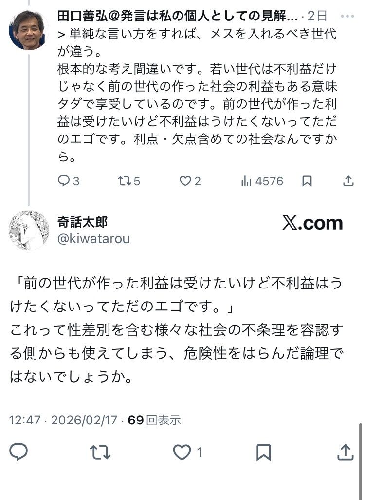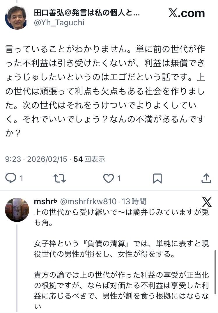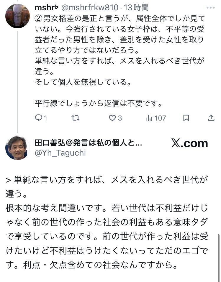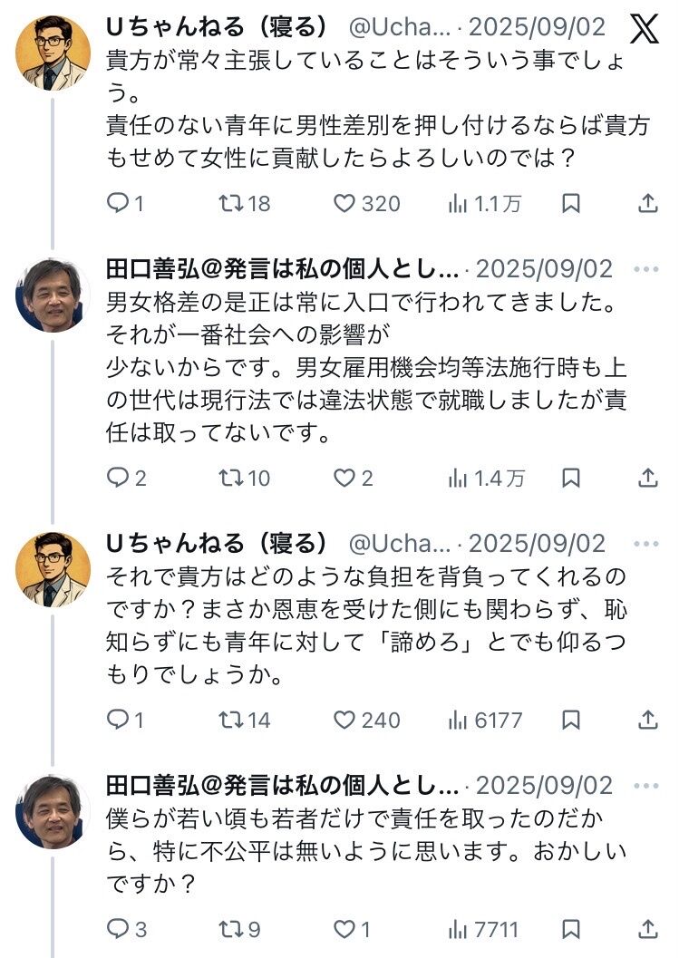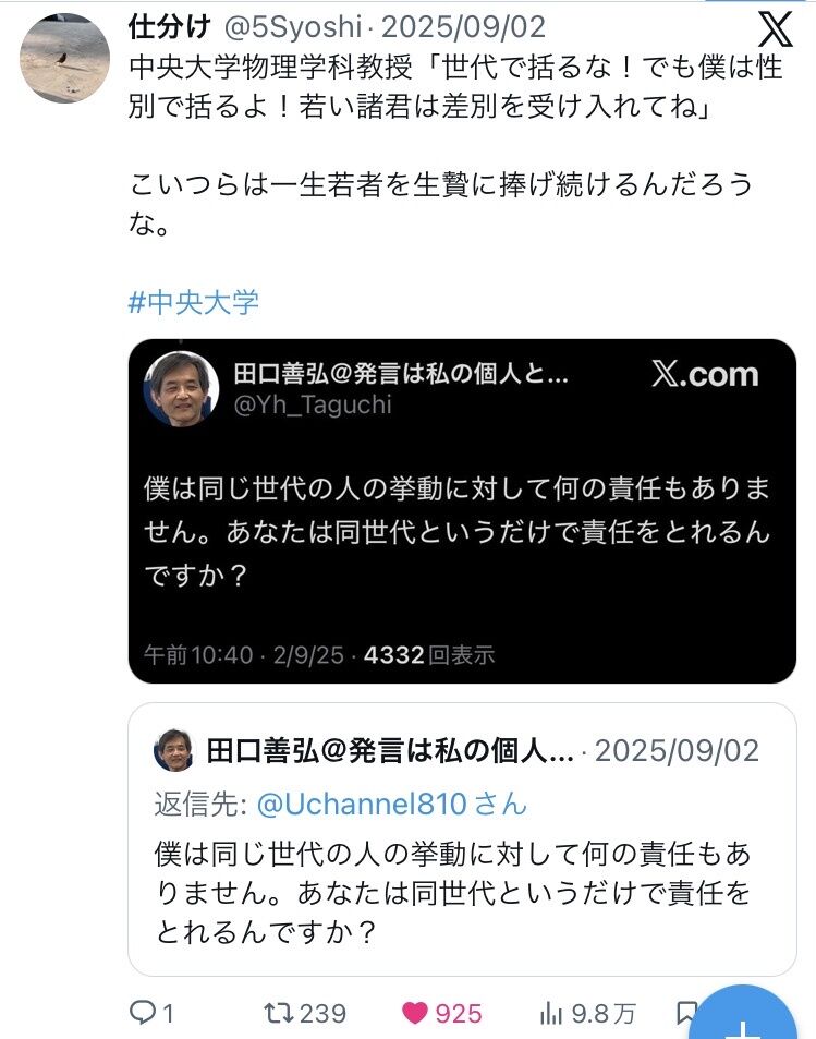 中央大教授「女子枠に反対する若い男子学生はただのエゴ。彼らには不利益を受ける責任がある」