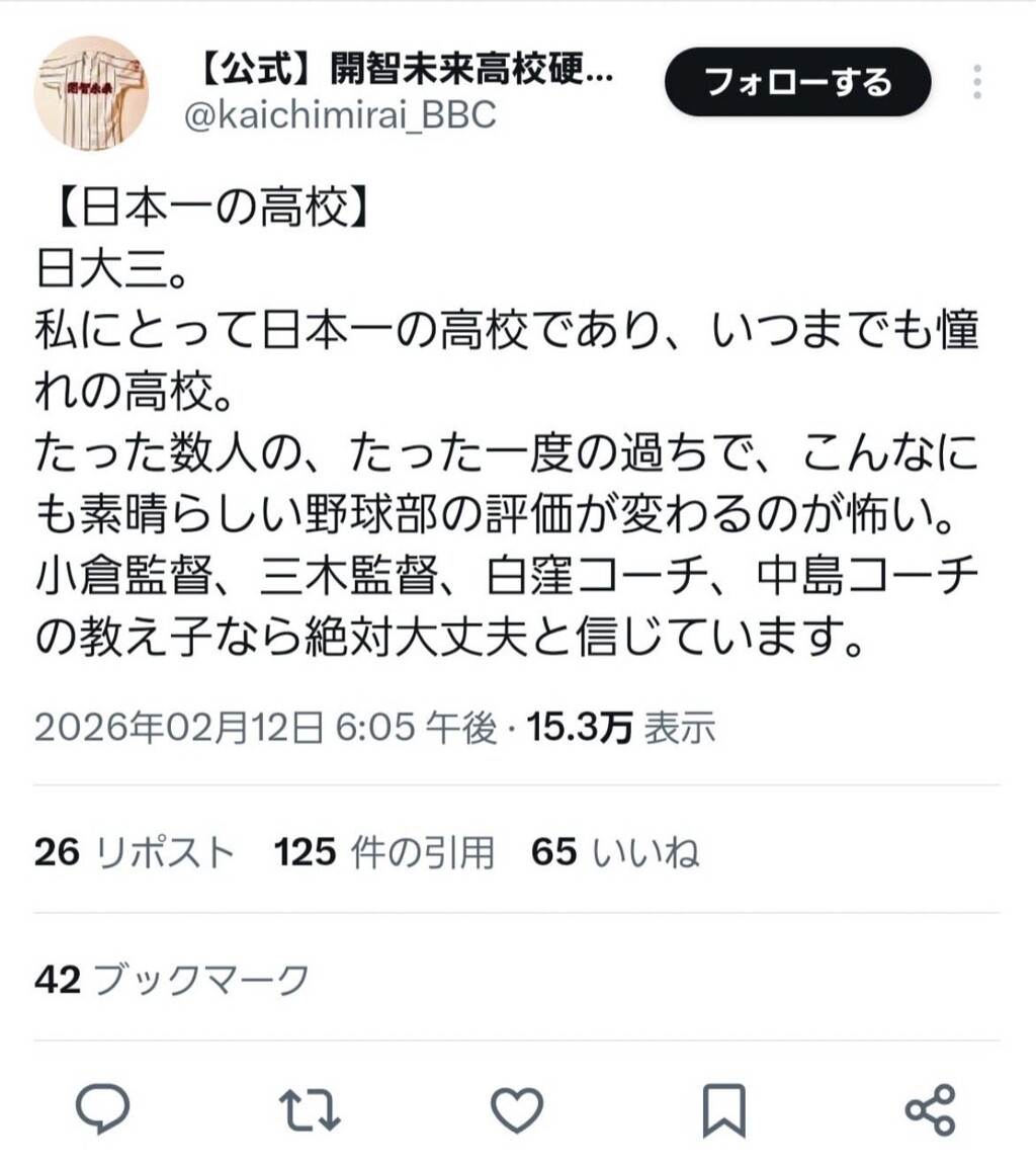 続けて「当該投稿は、個人の見解とはいえ、教育に携わる者としてあるまじき不適切なものであり、本校の教育方針とも全く相容れないものです」と指摘。当該監督に対し厳重注意を行うとともに、現在はSNSの利用停止を命じていることを明かした上で「今後は、教職員一同、改めて情報モラルと倫理観の徹底を図り、皆様の頼回復に努めてまいる所存です」と伝えた。