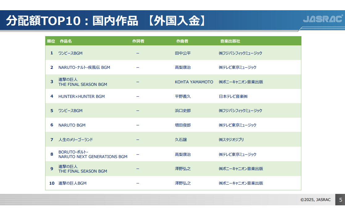 【画像】JASRAC「海外収益一番高いCDはワンピースのBGM集」
