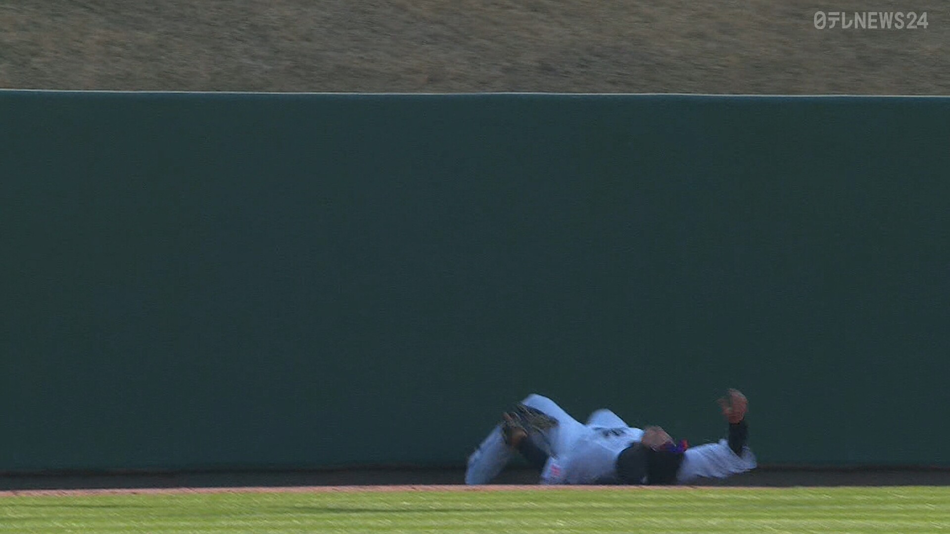 ロッテ・池田、外野フェンスに激突 → 地面に後頭部を強打し担架で搬送