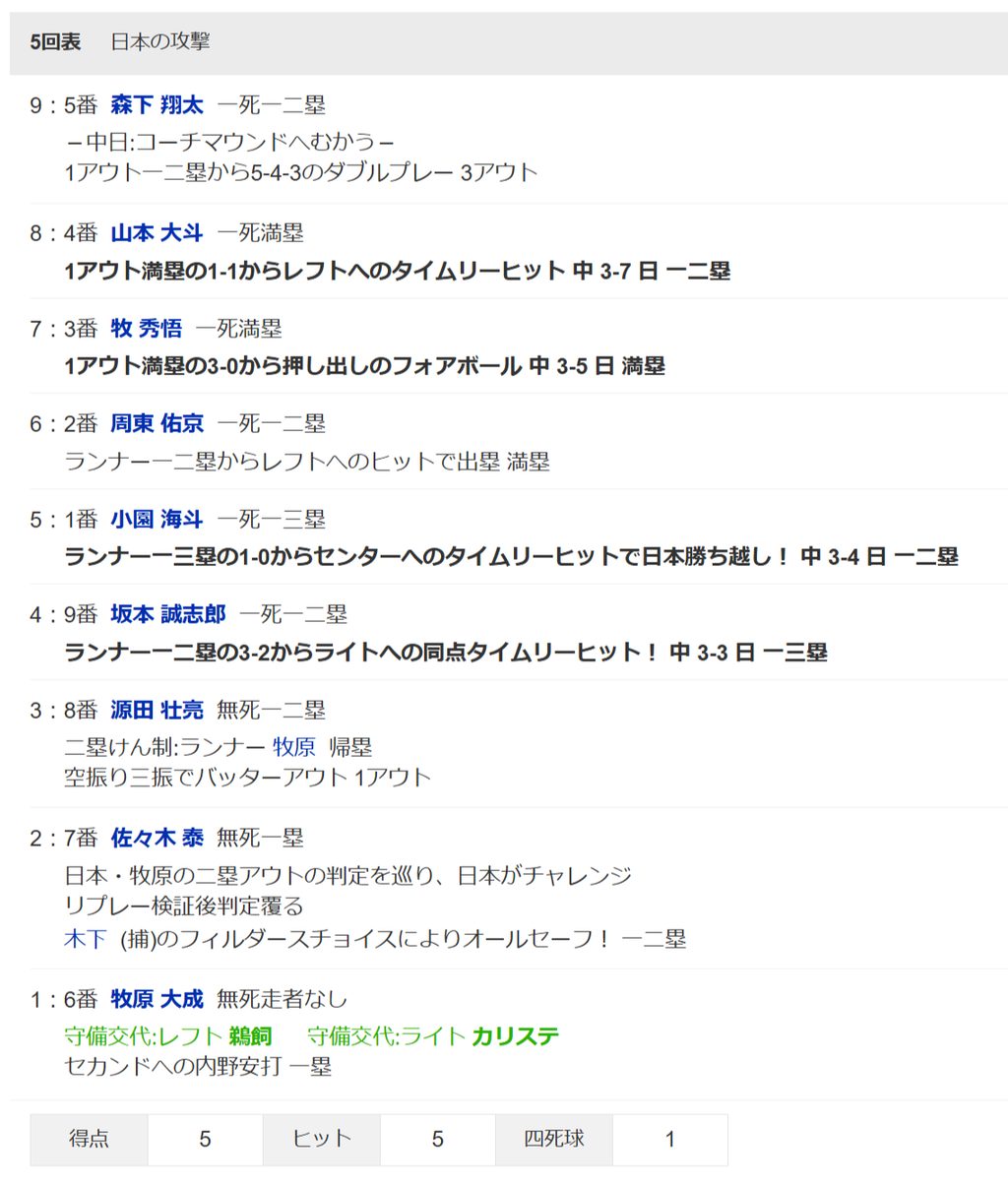 侍ジャパン、中日に連勝!5回に機動力と集中打で一挙5得点奪い逆転 牧と森下が本塁打放つ