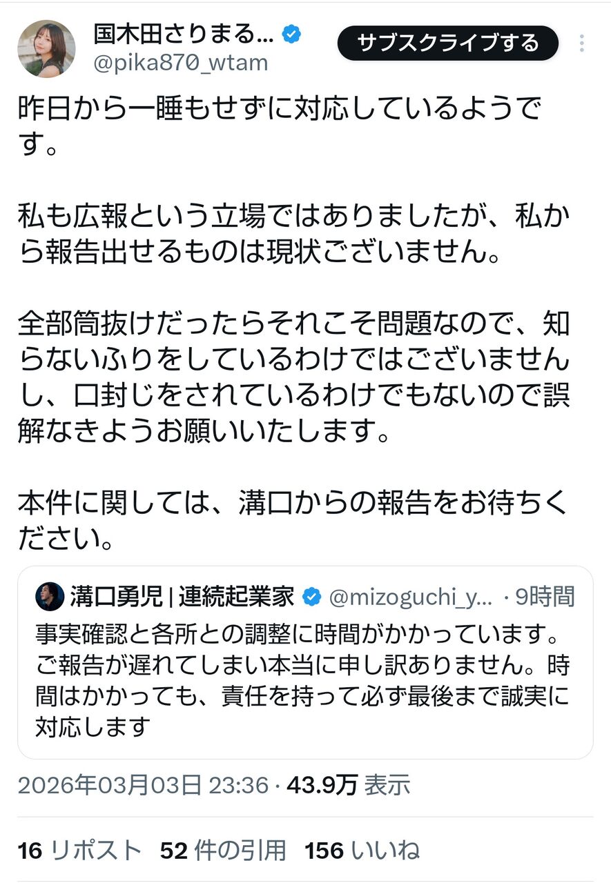 【悲報】サナエトークン溝口の広報「溝口は昨日から一睡もしていません」