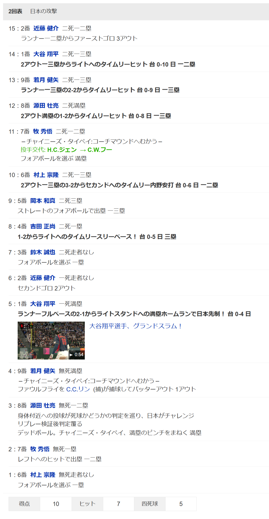 【WBC】日本打線が大爆発!大谷グラスラ吉田村上源田若月タイムリーで1イニング10点!大谷1人で5打点wwwwwwww
