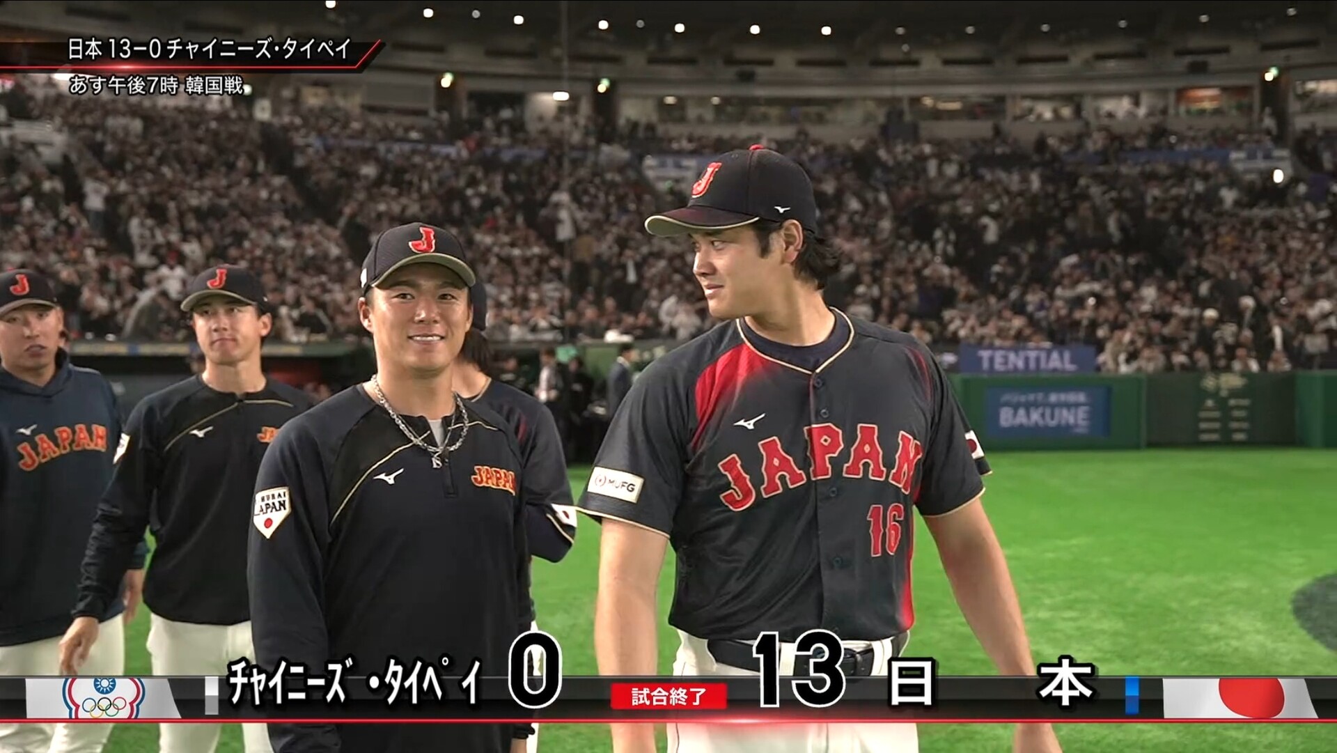 侍ジャパン、台湾に大勝 7回コールド13得点1安打完封リレー