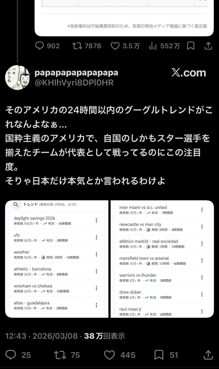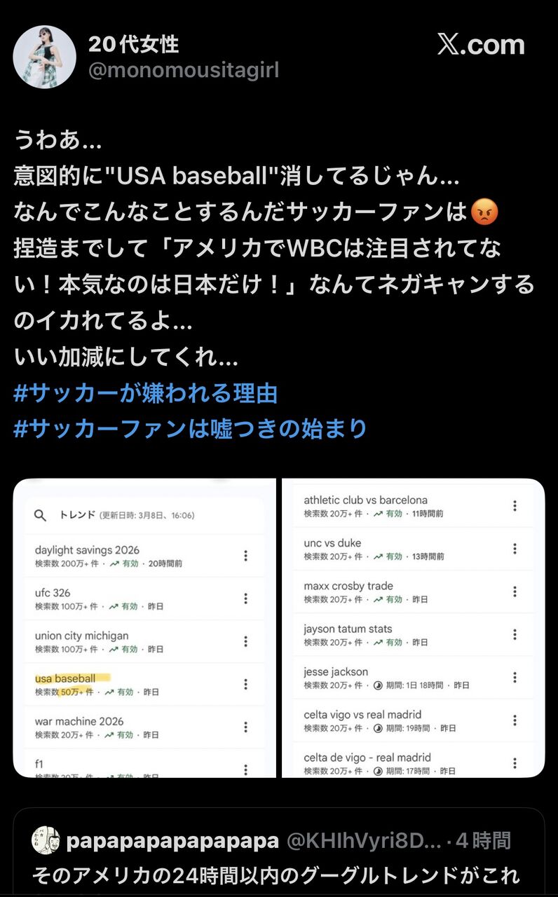 サッカー「アメリカではWBCは全然人気ないんだああああ」←不正がバレるwwwww