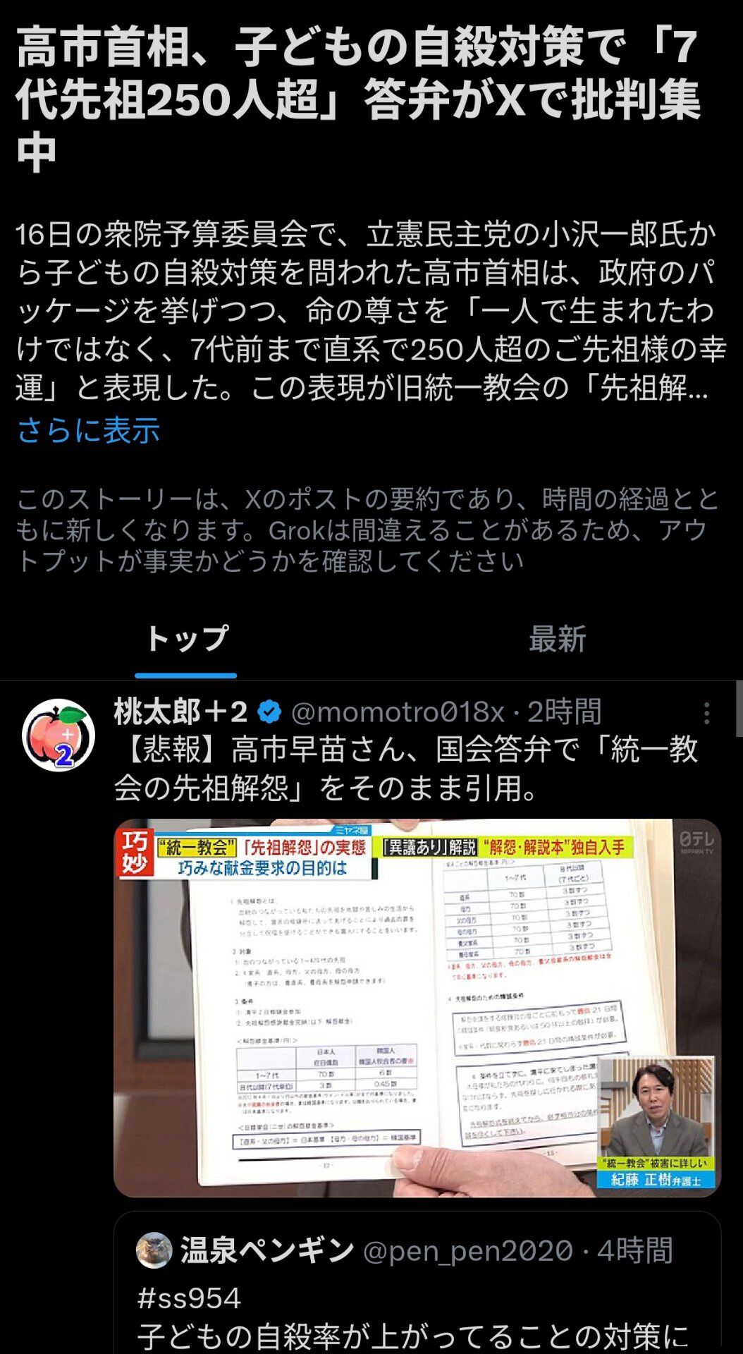 【悲報】高市早苗、うっかり統一教会の『解怨』を引用してしまう