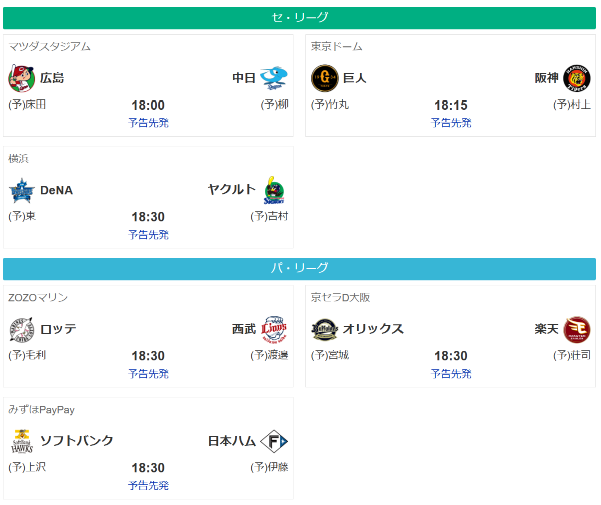 予告先発は以下の通り。