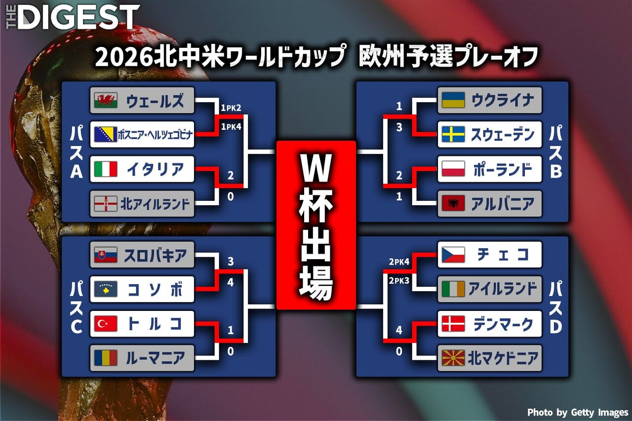 現地3月26日、北中米ワールドカップ欧州予選プレーオフ準決勝が各地で行なわれた。