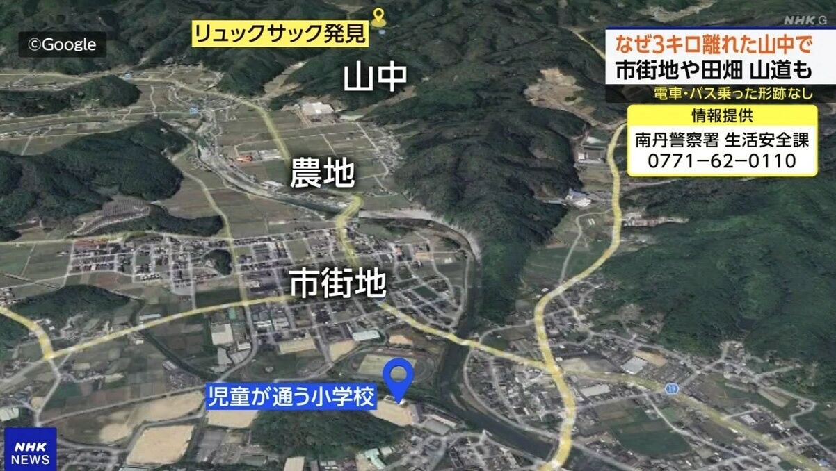 【悲報】小5自動行方不明事件、リュック落ちてた場所が山奥すぎると判明