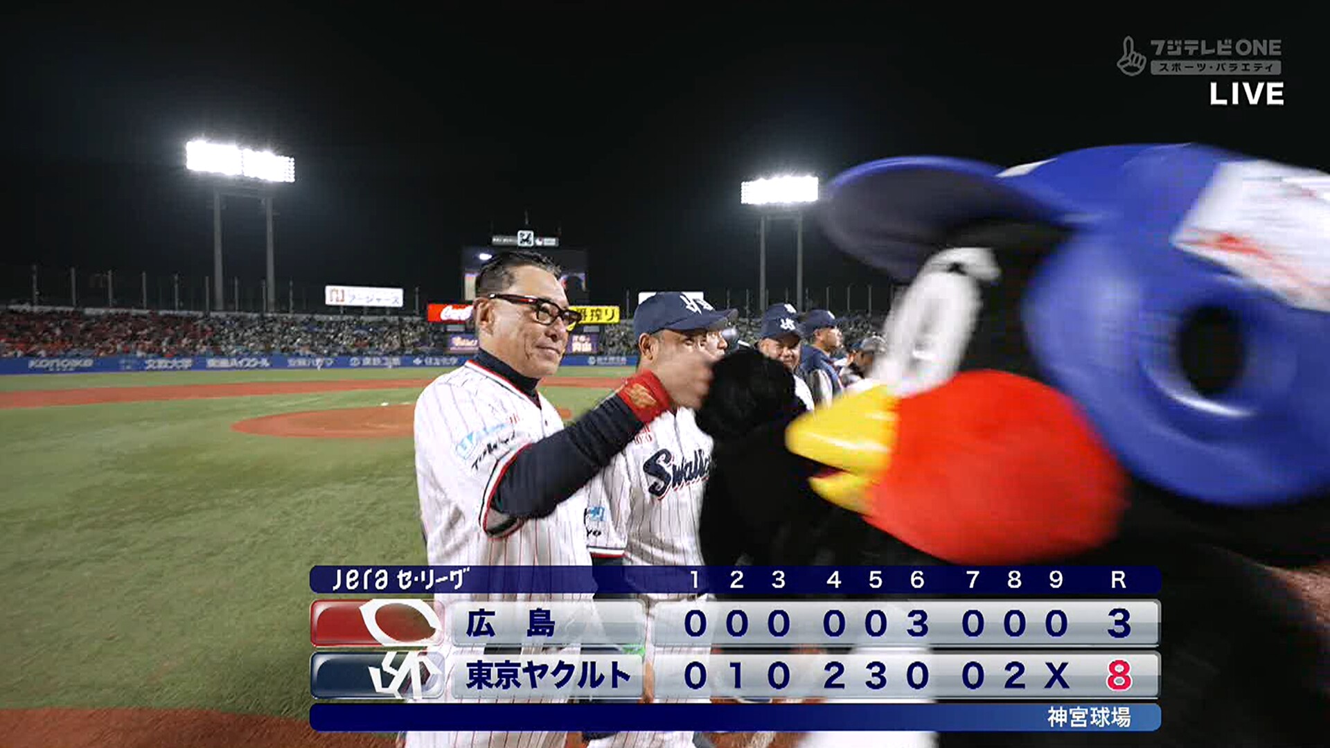 この日は今季の神宮開幕戦。活動を休止していた国民的マスコットつば九郎が復活した記念日に1勝をつかんだ。