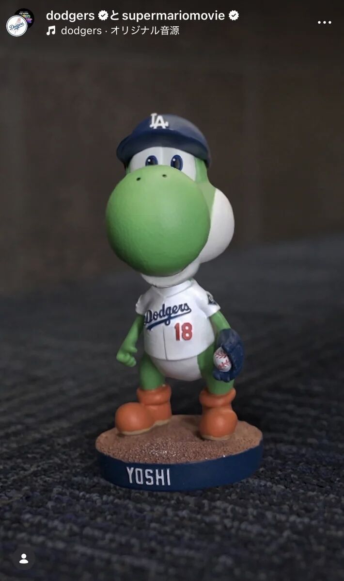 この日の試合は山本由伸と人気キャラクター「ヨッシー」がコラボした「ヨッシーボブルヘッド人形」が来場者先着4万人に配布されるとあって、開門の約5時間以上前からドジャースタジアム周辺には長蛇の列ができた。さらにドジャースナインも興味津々。試合前練習開始前にはスコット、クライン、ロブレスキが「ヨッシーボブルヘッド人形」を手にして山本のロッカーの前に並び、サインを求める異例の光景が見られた。