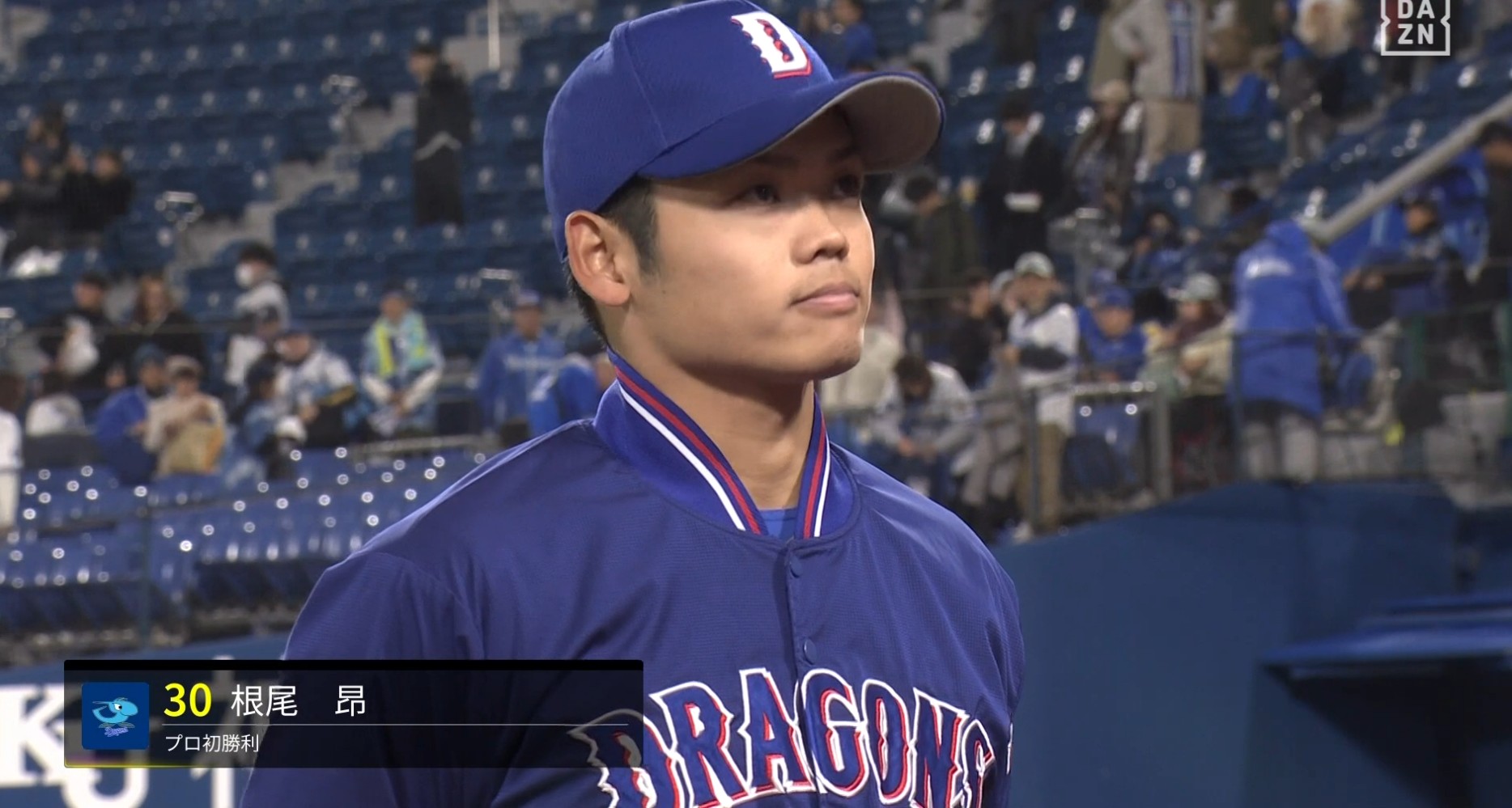 ヒーローインタビューを受けた右腕は「いつか来るとは思っていたんですが、最高の気分です。先ほど初勝利を知りました」と声を弾ませ、最後まで横浜スタジアムに残った竜党の声援に手を振って応えていた。