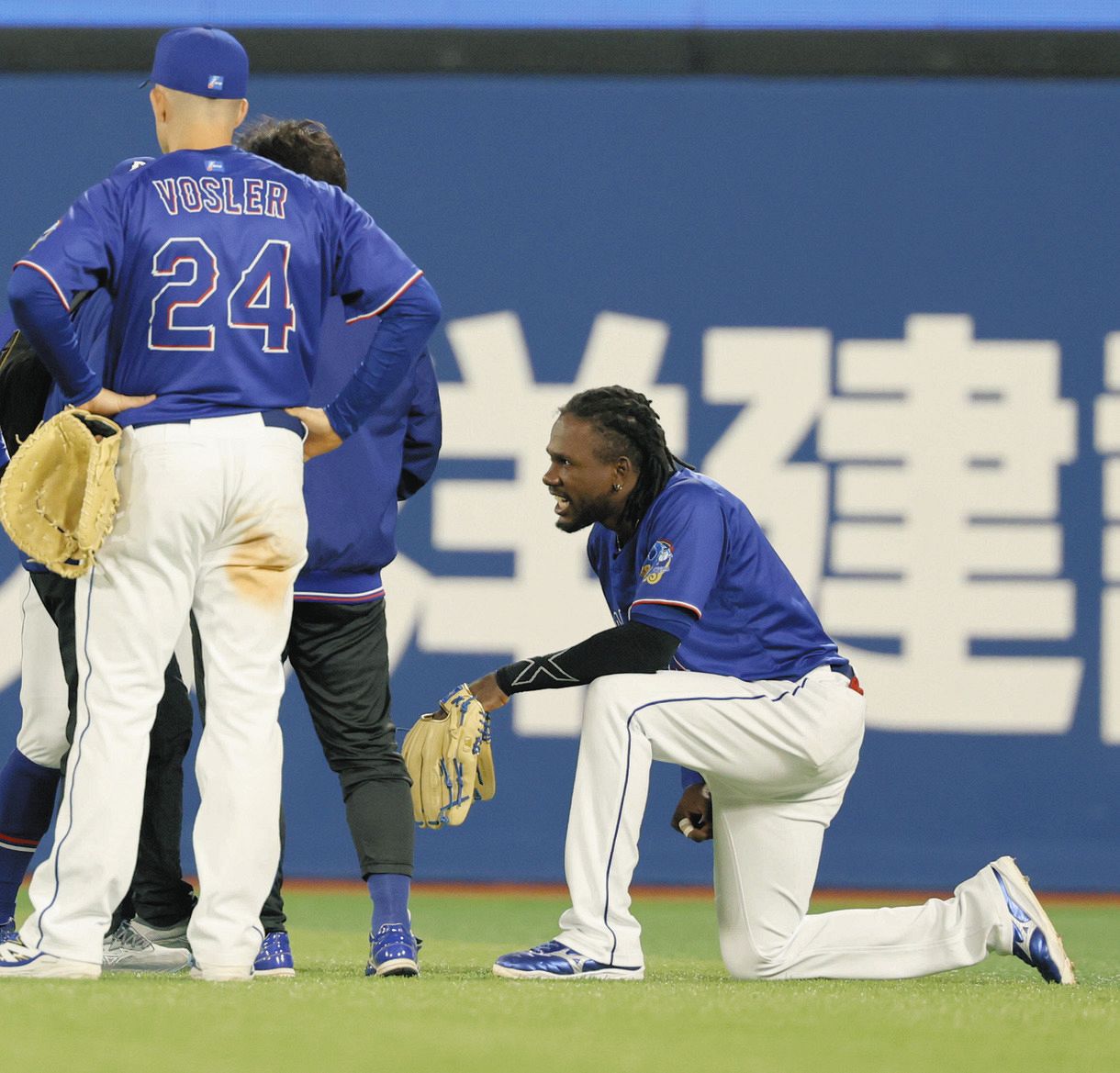 5回1死二、三塁の場面だった。右翼の守備位置で突然、右膝をついて、体調不良を訴えた。