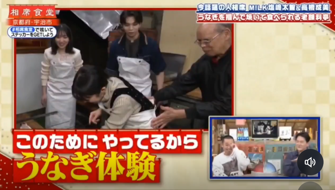 「ロケ終盤、塩崎さんがうなぎのつかみ取りから串打ち、焼くところまでを体験できるうなぎ店を訪れました。店には、偶然、プライベートで訪れていたアニメ『響け! ユーフォニアム』シリーズに出演する、声優の黒沢ともよさんと豊田萌絵さんが居合わせており、3人で取り組むことになったのです。