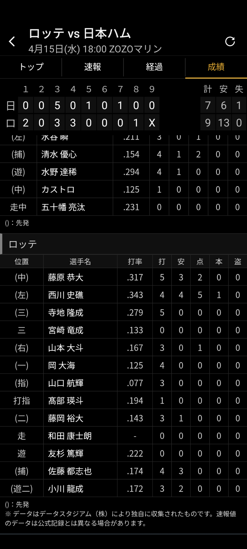 山口と高部と言うポジポジしてた2人が揃ってグロになってるのが実にロッテらしい