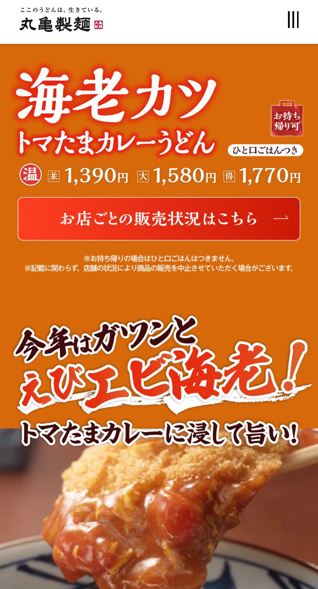 【画像】丸亀製麺の「トマたまカレーうどん」「海老カツトマたまカレーうどん」めちゃ美味そうwwwwwww