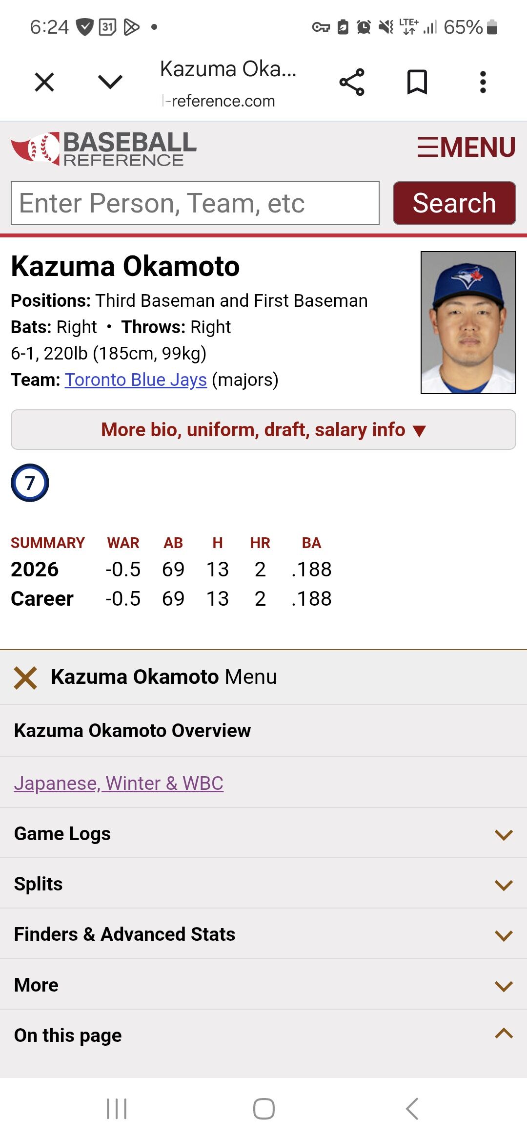 【緊急悲報】岡本和真 .200 2本 ops.586 fWAR-0.1 bWAR-0.3