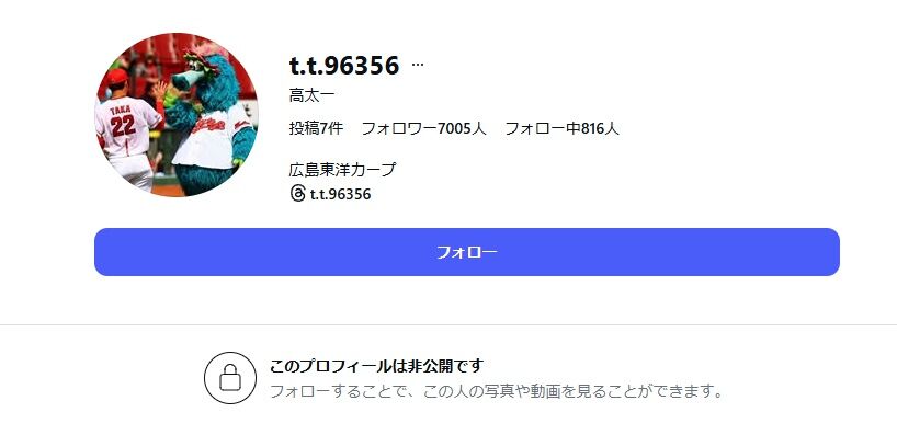 【悲報】広島・高太一、インスタ非公開へ