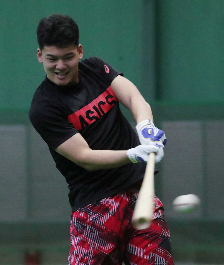 ドラフト1位・石川(東邦)はティー打撃、マシン打撃で精力的にバットを振り込み「昨日1日、(入寮で)何もしてなかったので、明日も新人研修でできないから、それを考えると余計にやっておきたかった」と汗をぬぐった。