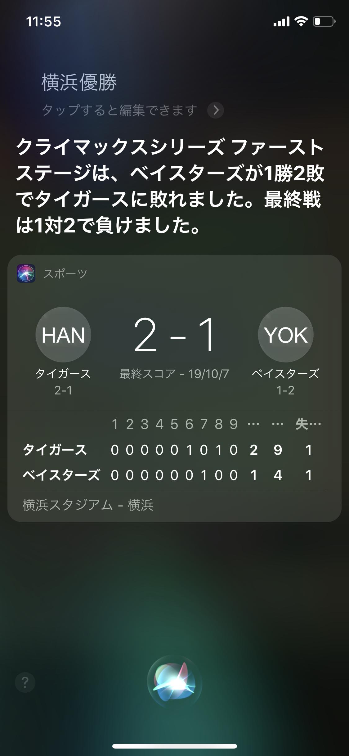 (*^◯^*)「Hey, Siri、横浜優勝」